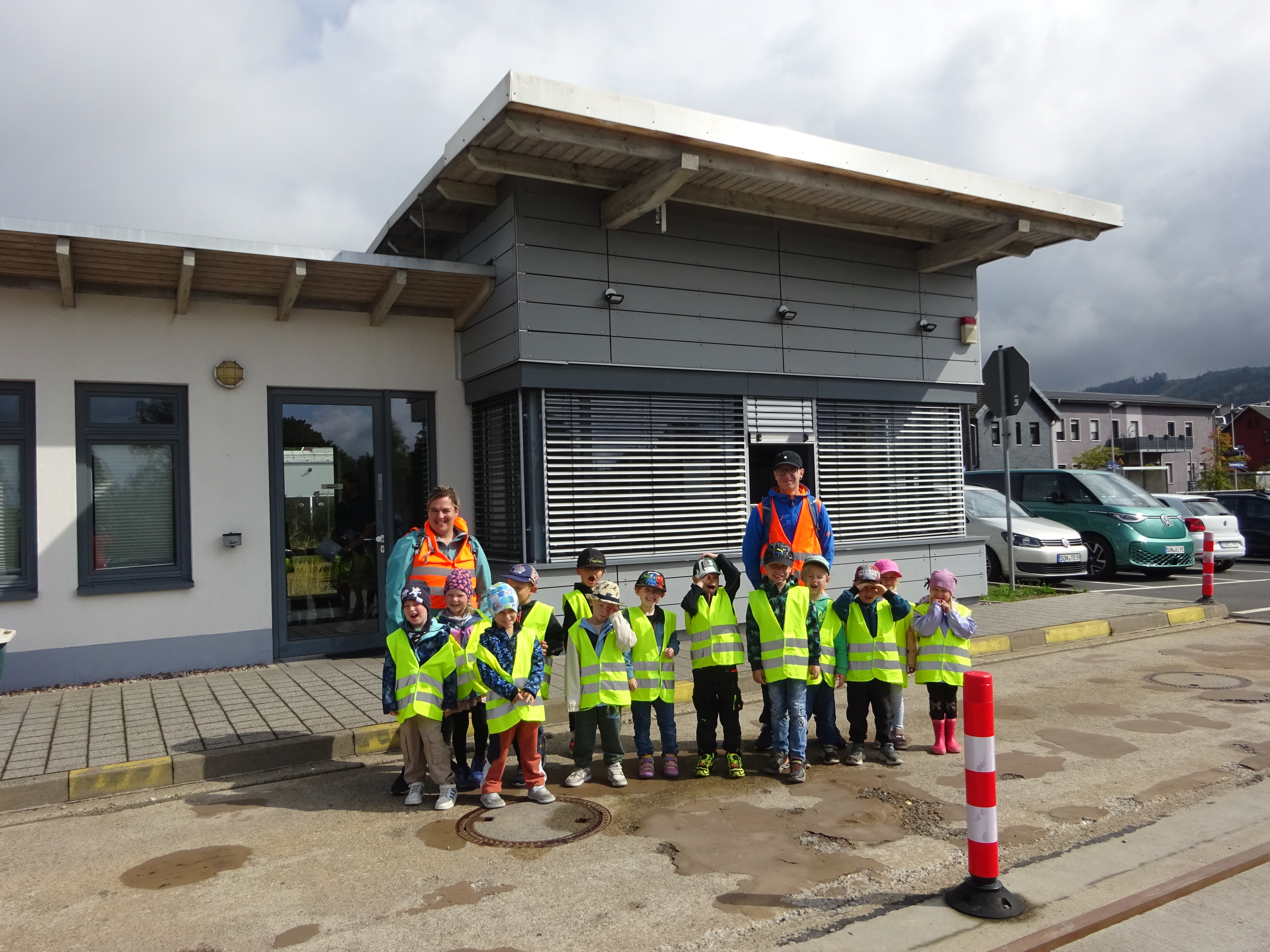 Vorschulkinder des Kindergartens „Tausendfüssler“ aus Neuhaus am Rennweg erkunden die Müllumladestation